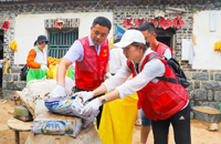 2019年8月6日,興業(yè)集團組織13名黨員和共青團員組成志愿服務隊,趕赴西湖鎮(zhèn)洪澇災區(qū)開展志愿救援活動。