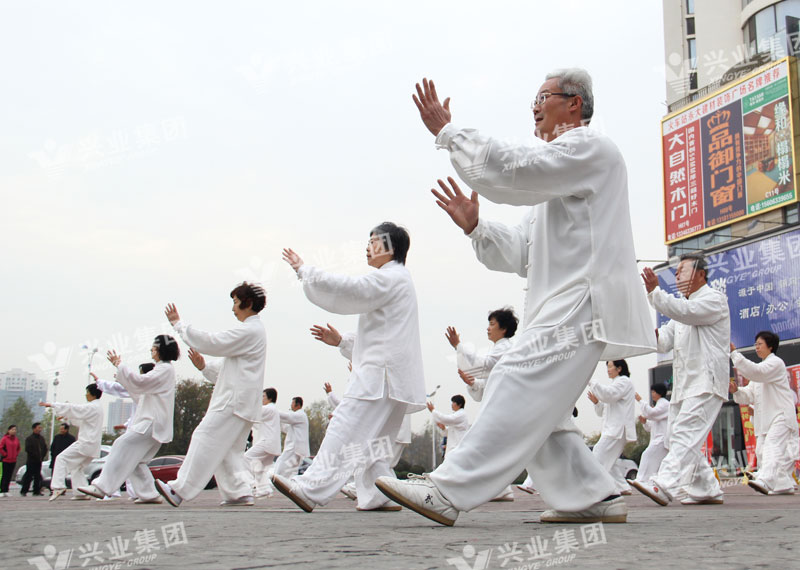2014年11月,興業(yè)中老年文體俱樂部在興業(yè)王府大街進行年終總結(jié)匯演(張浩 攝)