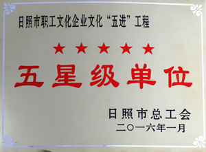 ·2016年1月,興業(yè)集團被評為“日照市職工文化企業(yè)五進工程”五星級單位