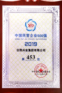 2019年8月,興業(yè)集團榮獲中國民營企業(yè)500強第453位