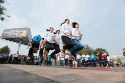 2013年9月28日,第九屆職工運(yùn)動(dòng)會(huì)在興業(yè)財(cái)富廣場(chǎng)舉行,圖為社區(qū)中老年文體活動(dòng)俱樂(lè)部精彩的開(kāi)幕式表演。 |