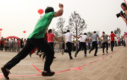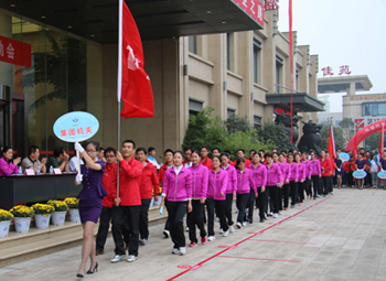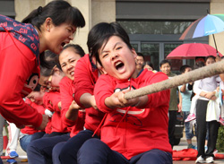 當(dāng)天,來自興業(yè)集團(tuán)各下屬單位的8支代表隊(duì)476名運(yùn)動(dòng)員精神飽滿地參加了“團(tuán)體跳繩”、“開火車”、“協(xié)作運(yùn)球接力”、“車輪滾滾”、“滾雪球”、“拔河”等團(tuán)體項(xiàng)目的比賽,整個(gè)現(xiàn)場氣氛熱烈,充滿激情,充分展示了“務(wù)實(shí)、創(chuàng)新、拼搏、進(jìn)取、奉獻(xiàn)”的興業(yè)精神和活力、和諧的企業(yè)風(fēng)采。另外,興業(yè)社區(qū)中老年文體活動(dòng)俱樂部在開幕式上進(jìn)行了太極拳和健身操表演。精彩的開幕式表演和緊張激烈的比賽吸引了眾多市民駐足觀看。