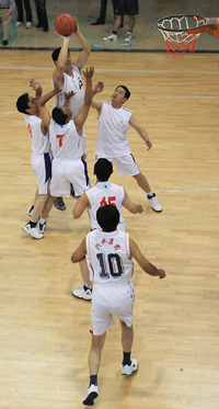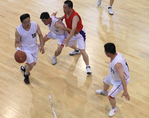 在比賽過(guò)程中各支代表隊(duì)都發(fā)揮出了極高的水平,為觀眾奉獻(xiàn)了一場(chǎng)場(chǎng)精彩的比賽。尤其在9月20日上午的交叉賽中,興業(yè)汽配代表隊(duì)與天泰鋼結(jié)構(gòu)代表隊(duì)勢(shì)均力敵,比賽中雙方比分交替上升,離結(jié)束還有不到20秒時(shí),汽配代表隊(duì)61:58領(lǐng)先3分并持有球權(quán),此時(shí)汽配隊(duì)員的心理感覺(jué)穩(wěn)操勝券,一個(gè)不經(jīng)意的走步把球權(quán)送給對(duì)手,離結(jié)束不到2秒,鋼構(gòu)中鋒馬沖順勢(shì)強(qiáng)攻,一記精準(zhǔn)的3分遠(yuǎn)投, 將比分追成61平,使比賽拖進(jìn)加時(shí)。在加時(shí)賽中,汽配中鋒崔冰連續(xù)中投得手,興業(yè)汽配代表隊(duì)最終以73:65的比分完勝鋼構(gòu),躋身本屆籃球比賽的冠、亞軍決賽。因?yàn)樘鞖庠颍?月20日下午的半決賽、決賽和驥翼組籃球表演賽改在日照一中室內(nèi)籃球場(chǎng)舉行。半決賽、決賽異常激烈,特別是在興發(fā)和汽配之間進(jìn)行的決賽,展示了興業(yè)集團(tuán)籃球的實(shí)力和水平,興發(fā)隊(duì)員們一次次嫻熟的配合,一個(gè)個(gè)精彩的扣籃,不時(shí)獲得現(xiàn)場(chǎng)觀眾的陣陣喝彩和掌聲。集團(tuán)驥翼隊(duì)與興發(fā)驥翼隊(duì)的籃球表演賽同樣上演了群雄大戰(zhàn),集團(tuán)驥翼隊(duì)在王建國(guó)總經(jīng)理帶領(lǐng)下,抗拒了體力不足,堅(jiān)持打滿(mǎn)全場(chǎng),最終以44:44的比分和興發(fā)驥翼隊(duì)握手言和(因?qū)俦硌葙惒辉偌訒r(shí)),也宣告興業(yè)集團(tuán)第五屆職工運(yùn)動(dòng)會(huì)籃球比賽鳴金收兵。