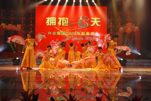 張開(kāi)堅(jiān)定的臂膀 擁抱希望的春天 “擁抱春天”興業(yè)集團(tuán)2009年春節(jié)聯(lián)歡晚會(huì)隆重舉行 鼠去牛來(lái)辭舊歲,龍飛鳳舞慶新春。1月17日,“擁抱春天”興業(yè)集團(tuán)2009年春節(jié)聯(lián)歡晚會(huì)在日照廣播電視演播大廳隆重舉行。丁杰、王建國(guó)、韓金軍、趙文強(qiáng)、劉永漢、申作華、李春賢等領(lǐng)導(dǎo)和集團(tuán)工作標(biāo)兵、先進(jìn)工作者,及各分公司的職工代表500多人歡聚一堂,一同興致勃勃地觀看了演出。 整臺(tái)晚會(huì)在歡快、精彩、喜慶的歌伴舞《歡天喜地》中拉開(kāi)了帷幕。旋律優(yōu)美的歌舞器樂(lè)表演《日照,我眷戀的故鄉(xiāng)》,深情的表達(dá)了興業(yè)人對(duì)家鄉(xiāng)的熱愛(ài);公司王鵬的獨(dú)唱《今天》唱出現(xiàn)代人對(duì)生活的執(zhí)著追求;興業(yè)房產(chǎn)的姑娘們自編自演的舞蹈《趕!罚┟钗┬さ谋憩F(xiàn)出了海邊人的趕海樂(lè)趣。小品《牛老板買房》來(lái)源于生活、取材于銷售工作,通過(guò)小品中的牛老板對(duì)銷售人員的現(xiàn)場(chǎng)考驗(yàn),進(jìn)而義無(wú)反顧的買興業(yè)房子這一主題,再現(xiàn)了興業(yè)房產(chǎn)旨在用服務(wù)贏得客戶,用真誠(chéng)打動(dòng)業(yè)主,堅(jiān)持走品牌戰(zhàn)略的路線,小品演員逼真到位的表演逗的臺(tái)下的觀眾捧腹大笑;興業(yè)房產(chǎn)副總許愛(ài)華和興業(yè)世紀(jì)嘉園社區(qū)阿姨們帶來(lái)的太極拳和劍術(shù)表演,剛?cè)岵?jì),相得益彰,展示了人們對(duì)中華武術(shù)的傳承與喜愛(ài);激昂高亢的男聲獨(dú)唱《愛(ài)不愛(ài)我》唱出了年輕人的激情,唱出了年輕人的執(zhí)著;小品《以愛(ài)的名義》講述了一名興業(yè)員工和他的妻子在汶川大地震發(fā)生后,無(wú)私捐款的感人故事,展示了興業(yè)員工崇高的精神境界;情到深處,臺(tái)下的觀眾無(wú)不為之潸然淚下。詩(shī)歌朗誦《讓抗震精神永遠(yuǎn)激勵(lì)我們向前》將整臺(tái)晚會(huì)推向了高潮,通篇道出了興業(yè)人在汶川發(fā)生震災(zāi)后,積極捐款、捐物、獻(xiàn)血、生產(chǎn)救災(zāi)板房、赴川援建、幫助災(zāi)區(qū)同胞重建家園的感人場(chǎng)景,表現(xiàn)了興業(yè)人在國(guó)家災(zāi)難面前一馬當(dāng)先、甘于奉獻(xiàn)的高度社會(huì)責(zé)任感。京韻大鼓《重整河山待后生》表達(dá)了對(duì)災(zāi)區(qū)的美好祝愿;歌曲《中國(guó)龍》表達(dá)了興業(yè)人的愛(ài)國(guó)情懷;來(lái)自興業(yè)汽配的裴玉用近乎專業(yè)的唱功為大家演唱的歌曲《天路》和青島永杰公司表演的《新疆歌曲串燒》給我們帶來(lái)了別開(kāi)生面的異域風(fēng)情;伴著夢(mèng)幻般音樂(lè)的魔術(shù)《畫中人》,其換衣玄機(jī)著實(shí)讓大家猜摸了一番;歌舞表演《走進(jìn)新時(shí)代》歌頌了中國(guó)改革開(kāi)放三十年的蓬勃發(fā)展,表達(dá)了興業(yè)人對(duì)祖國(guó)的無(wú)限熱愛(ài);本場(chǎng)晚會(huì)的主題歌,原創(chuàng)歌曲《擁抱春天》充分展示了興業(yè)人團(tuán)結(jié)協(xié)作、奮勇拼搏、共度寒冬、擁抱春天的堅(jiān)定信心和美好祝愿,將晚會(huì)再次推向高潮。晚會(huì)最后在《明天會(huì)更好》的優(yōu)美旋律和對(duì)新年美好的祝福聲中落下了帷幕。 本場(chǎng)晚會(huì)全部是由興業(yè)集團(tuán)員工自編、自演、自導(dǎo),節(jié)目?jī)?nèi)容健康向上,突出原創(chuàng),充分體現(xiàn)了興業(yè)集團(tuán)優(yōu)秀的企業(yè)文化和興業(yè)員工良好的精神風(fēng)貌。 整臺(tái)晚會(huì)歷時(shí)近兩個(gè)小時(shí),節(jié)目精彩紛呈,觀眾喜聞樂(lè)見(jiàn)。 據(jù)了解,“擁抱春天”興業(yè)集團(tuán)2009年春節(jié)聯(lián)歡晚會(huì)將于春節(jié)期間在日照電視臺(tái)各頻道播出,將為全市人民奉獻(xiàn)一道精彩的文藝大餐。 |